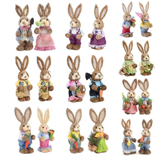 Casal de Coelhos de palha charmosos, 34cm