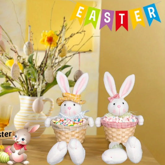 Coelho da páscoa com cesta para confeitos, 27cmx20cm