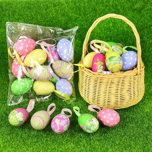 Ovos de pascoa coloridos estilo pingente, decoração da Páscoa, 12pcs